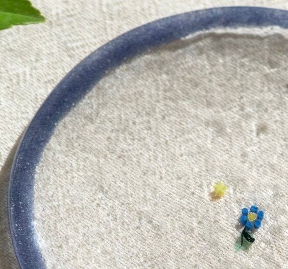 No.18 aoihana ふちふち皿 『花(不透明)×星・ミディアムサイズ』